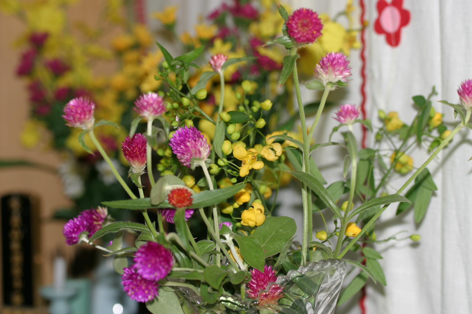 つかの間の安らぎは窓に広がる花々の美しさ、摘んで祭壇に添える