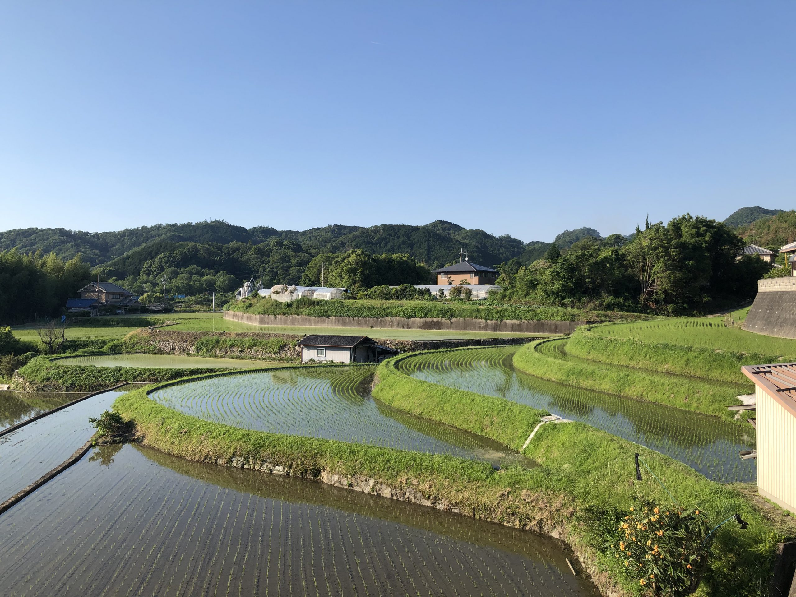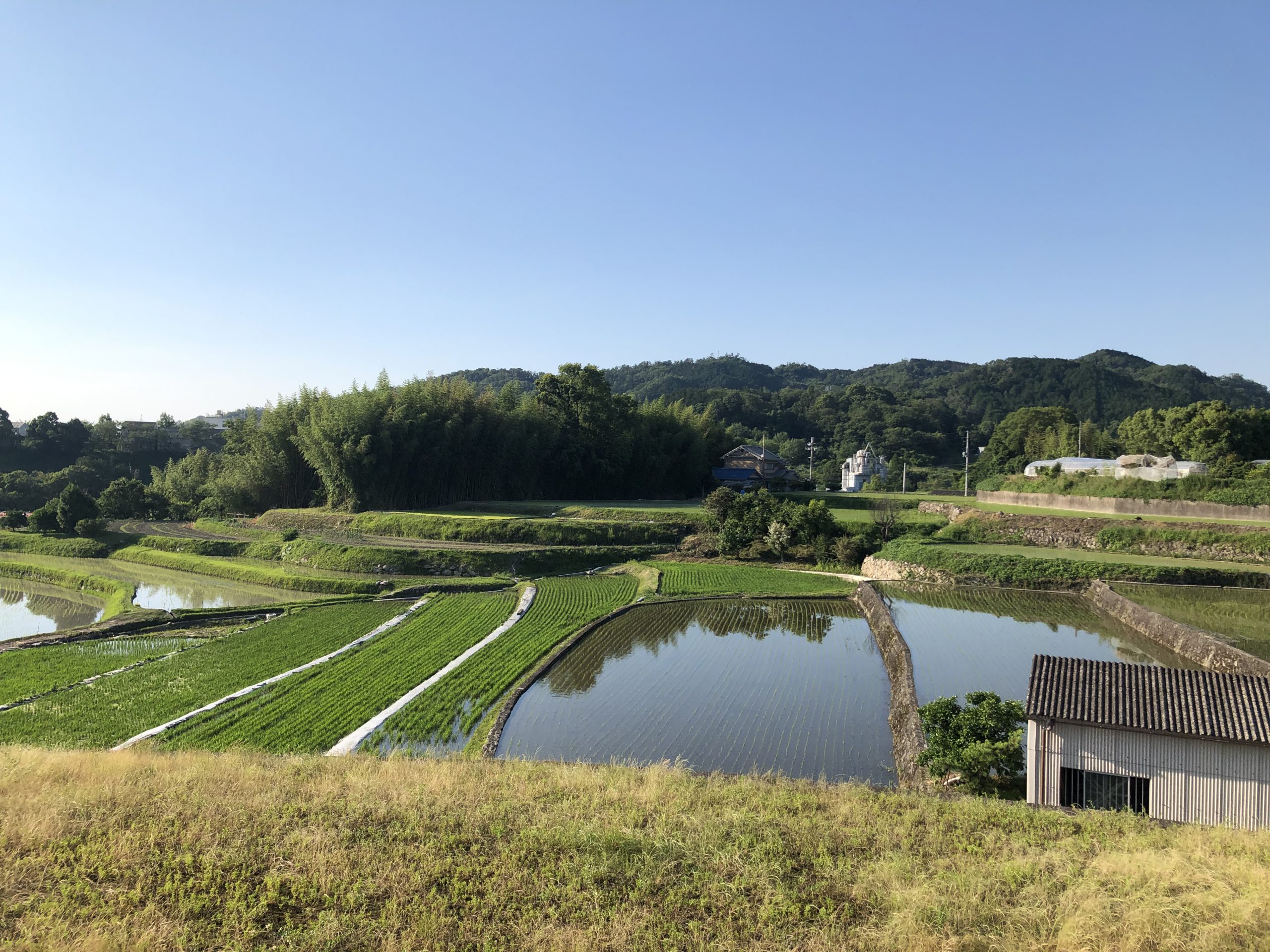 河南町は水であふれた棚田で