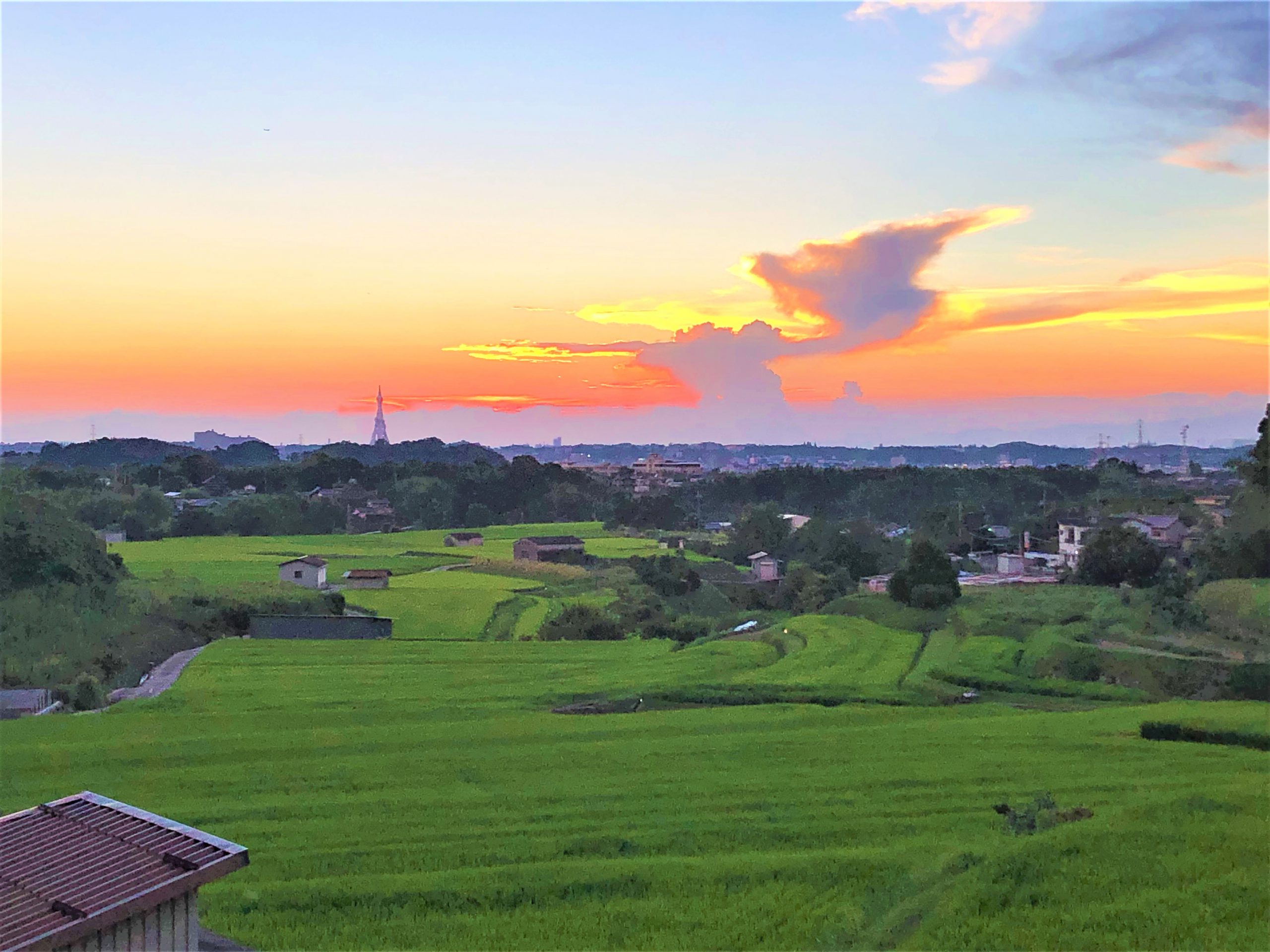 昨日の夕方6時40分の棚田と夕日です。 こちらは6月13日の棚田と夕日です。