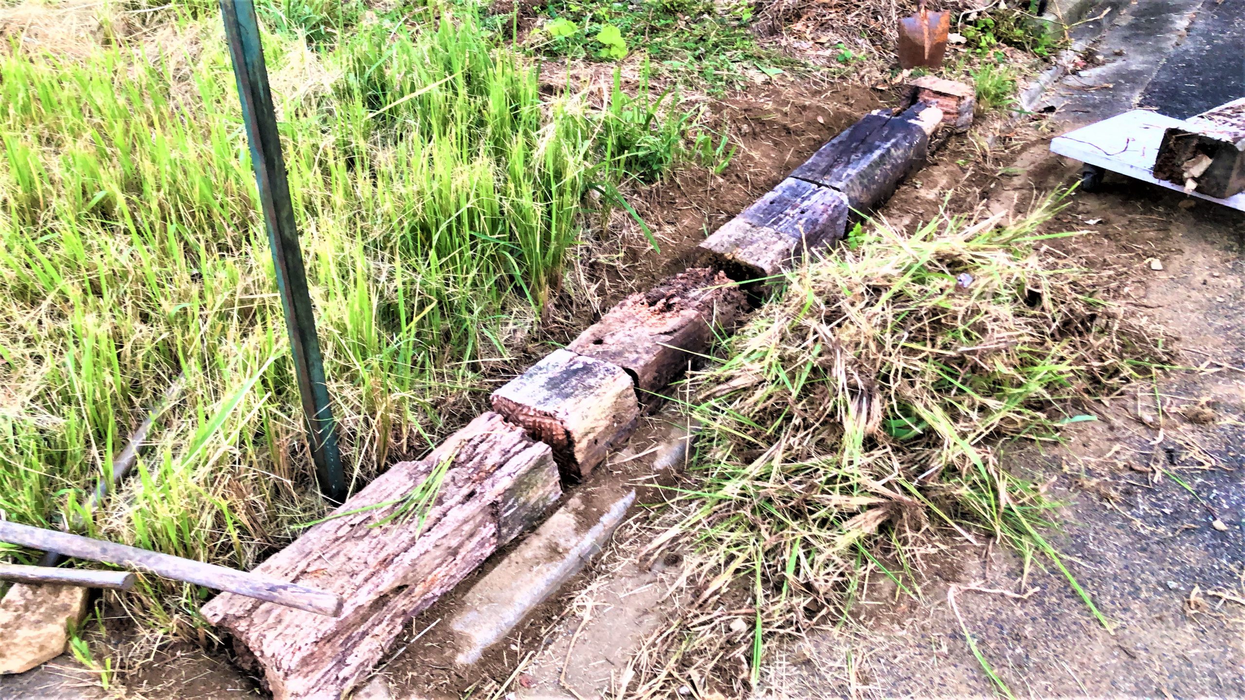枕木の廃材を置いて境目の出来上がり。