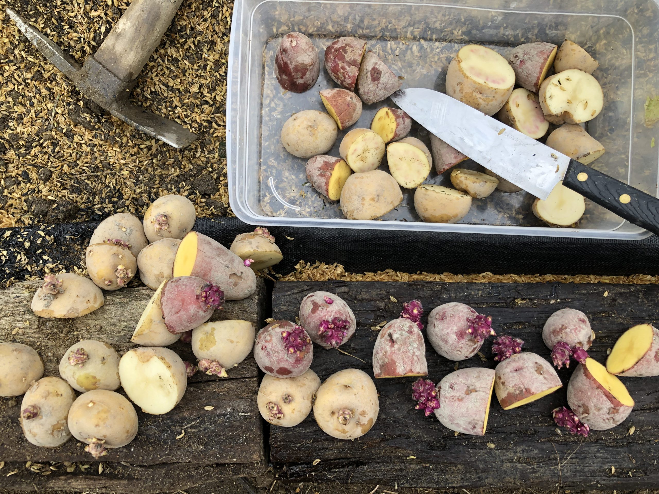 1か月遅れでジャガイモの植え付け完了! 果たして12月に収穫に至るのかは疑問。