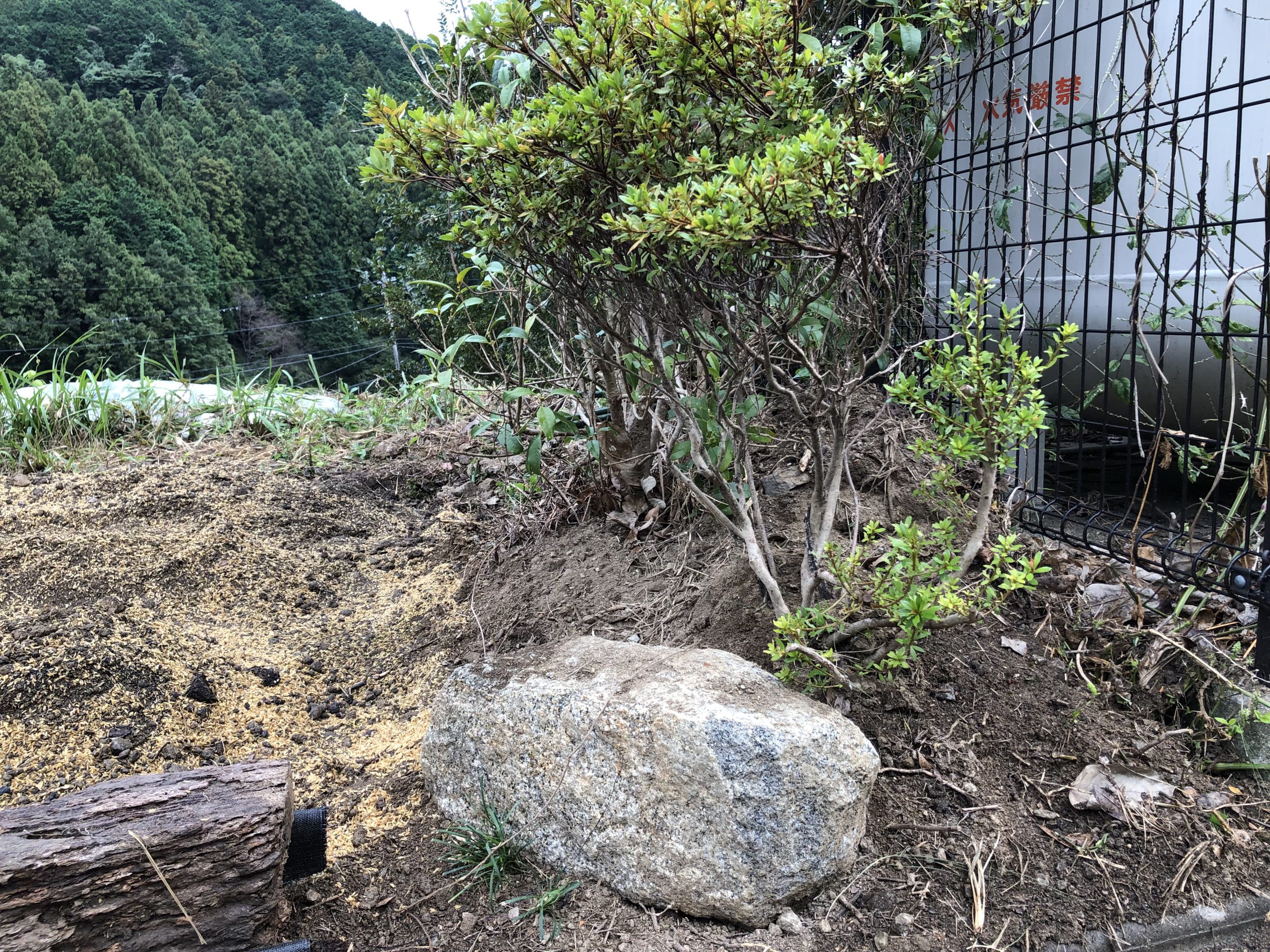 石の存在感が出てきました。息子の庭から皐月も移植して少しずつ完成の菜園が出来上がっていきます。