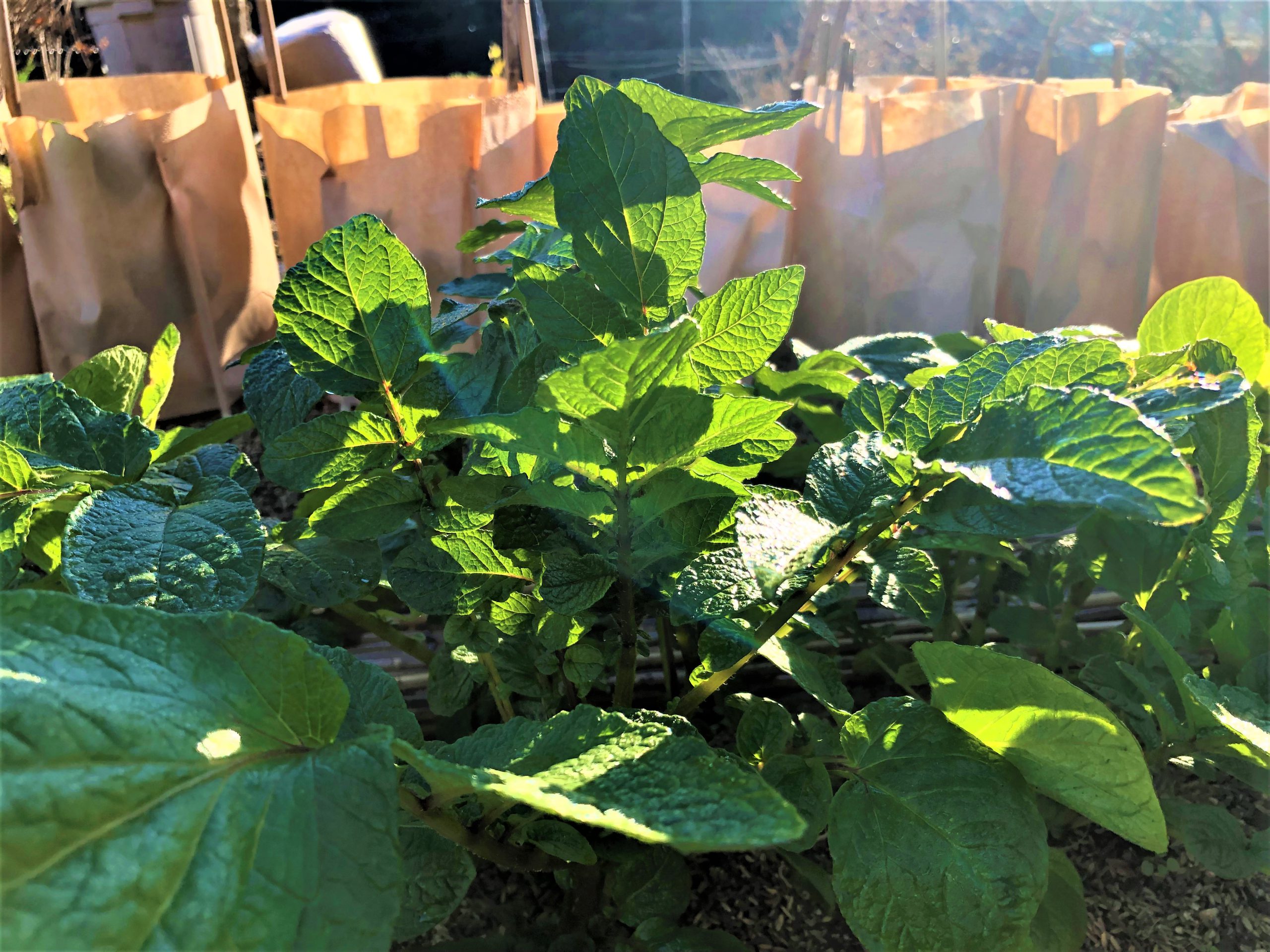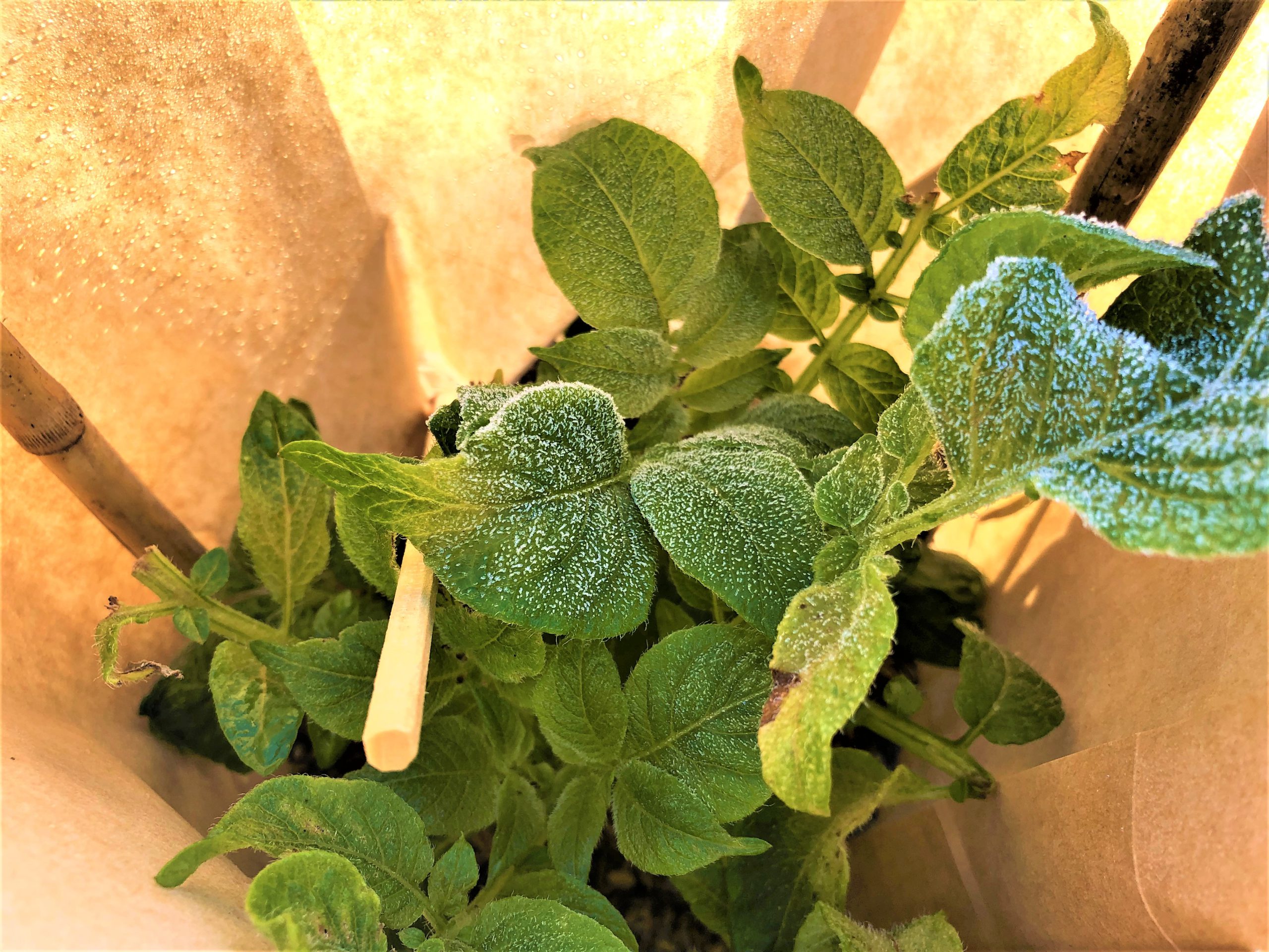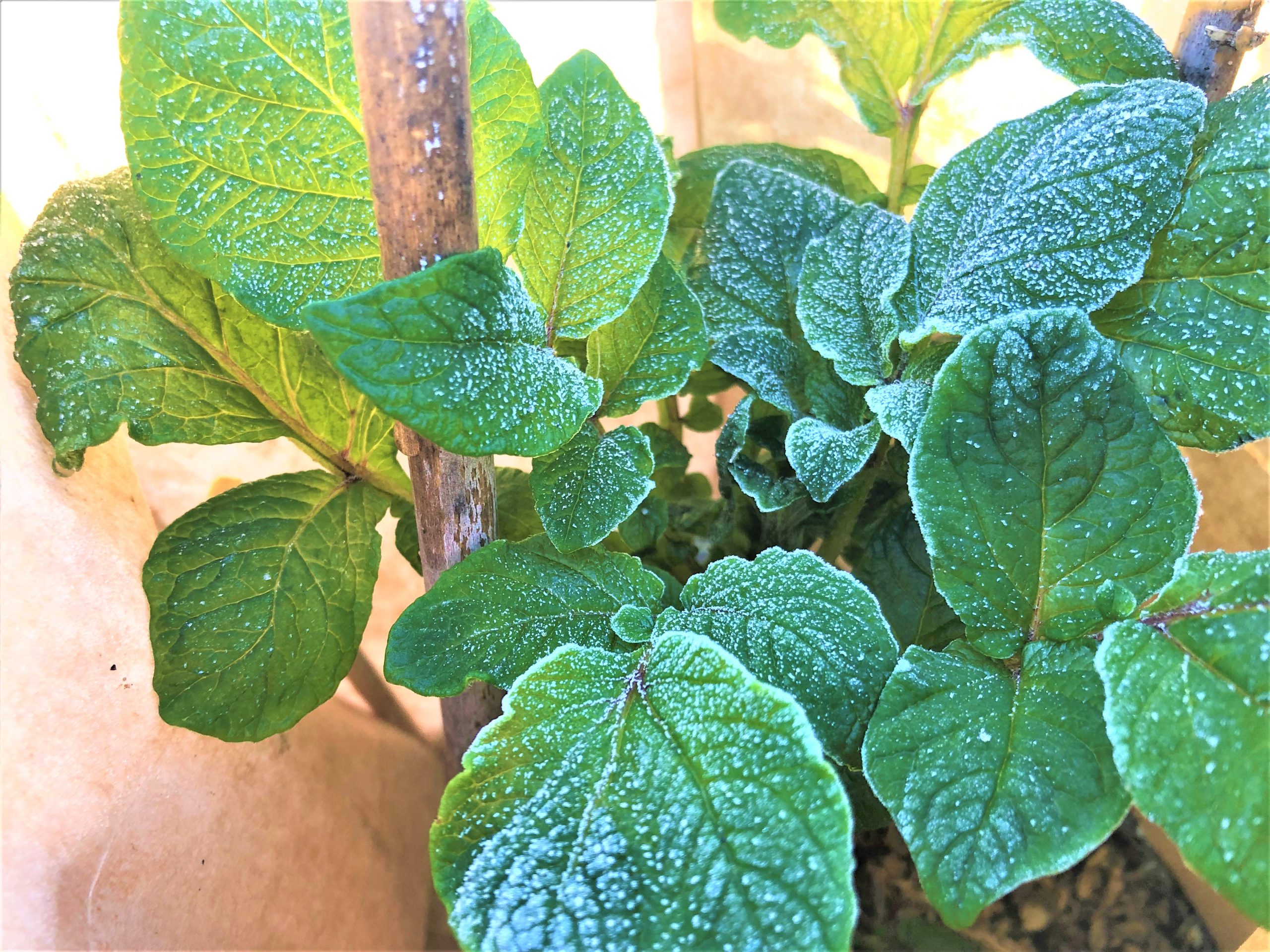 朝方の寒さにジャガイモの育ち具合が気になり