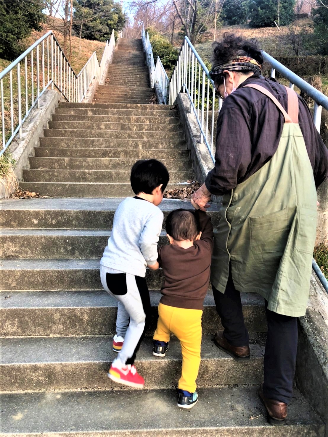 去年までは私に甘えておんぶされて登ってた階段を