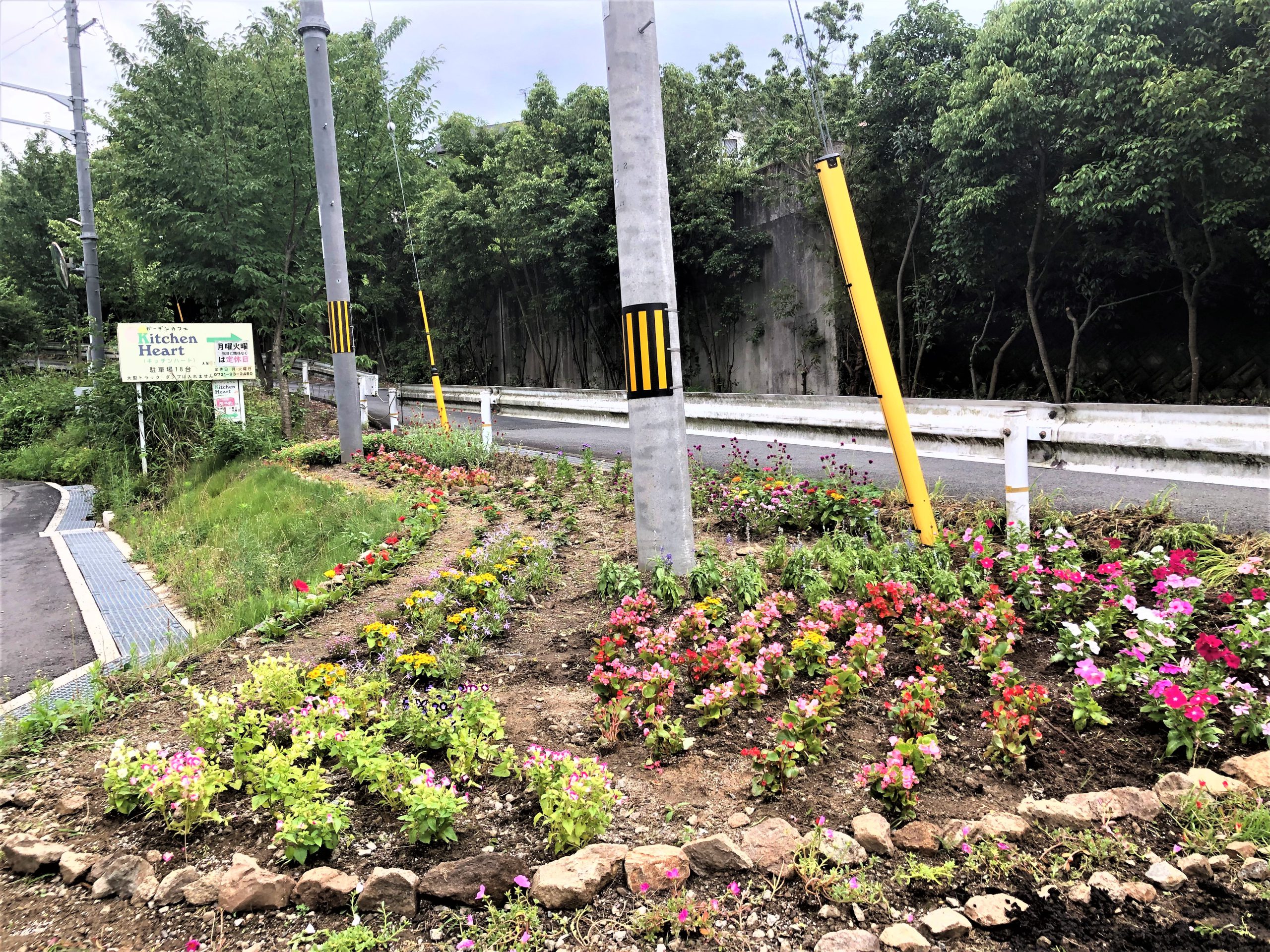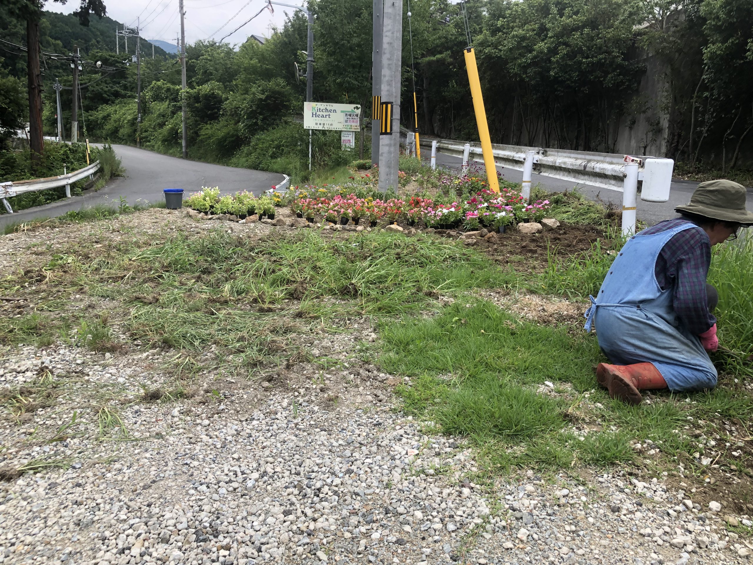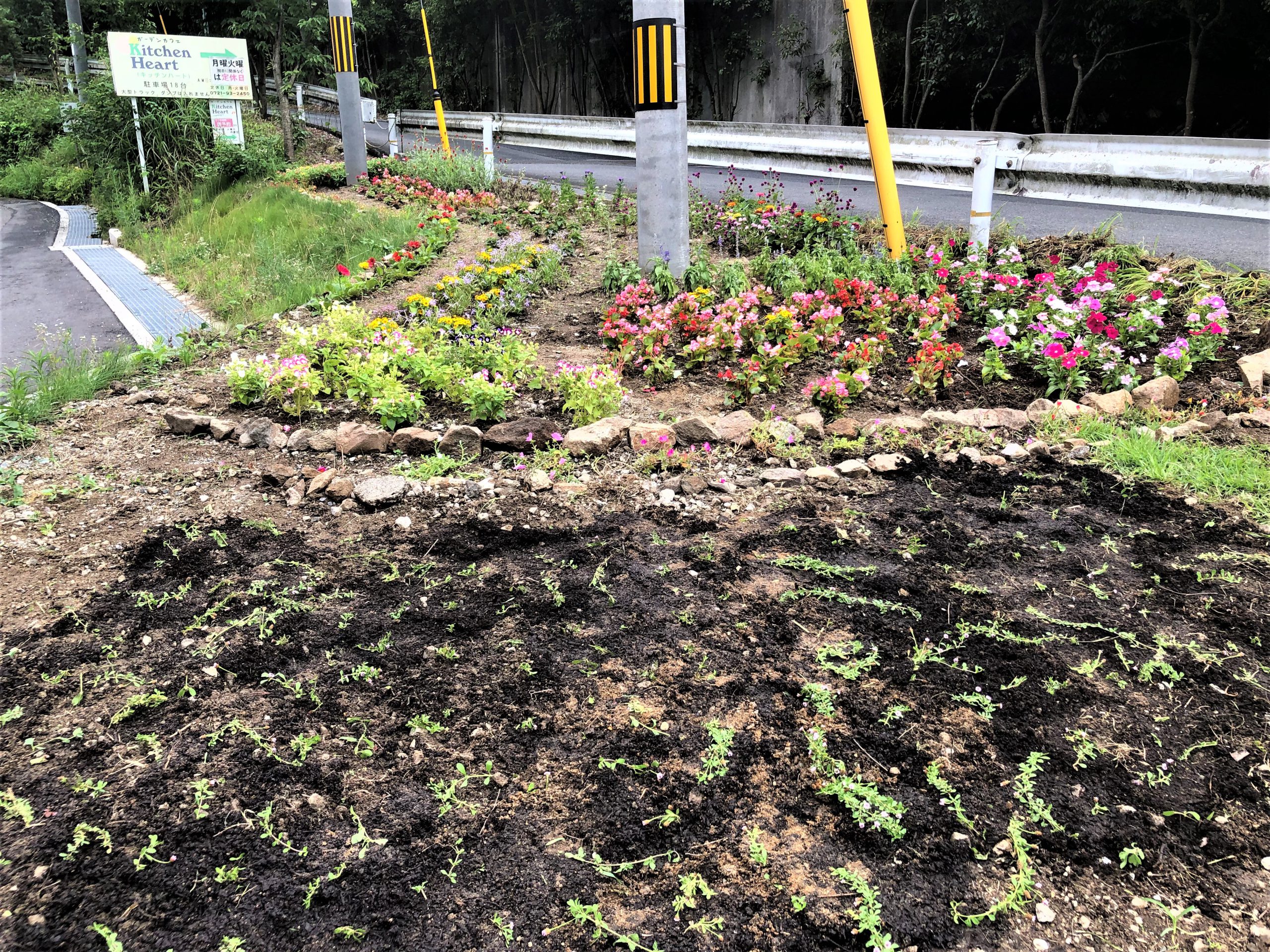 一か月前から道路脇の看板の雑草地を