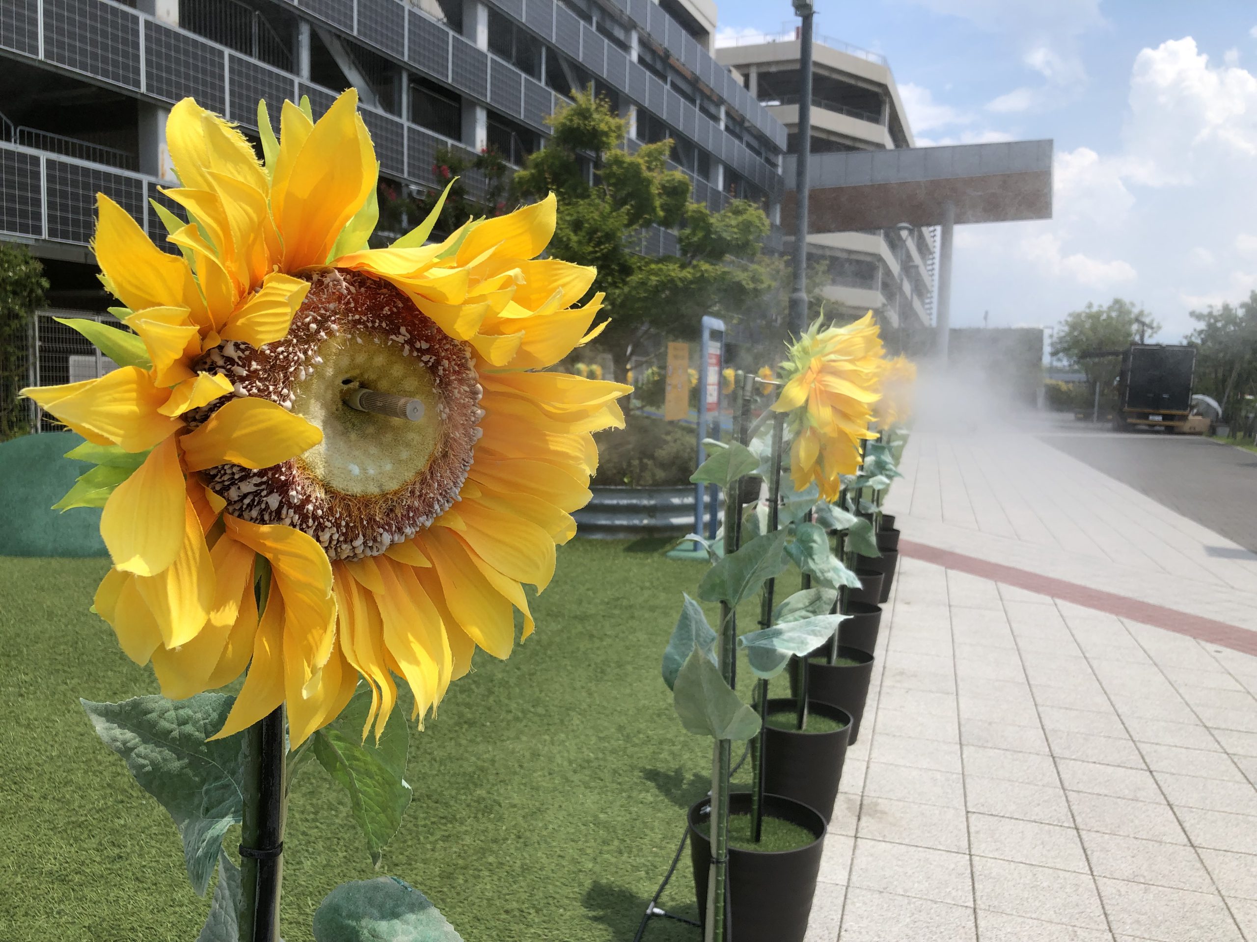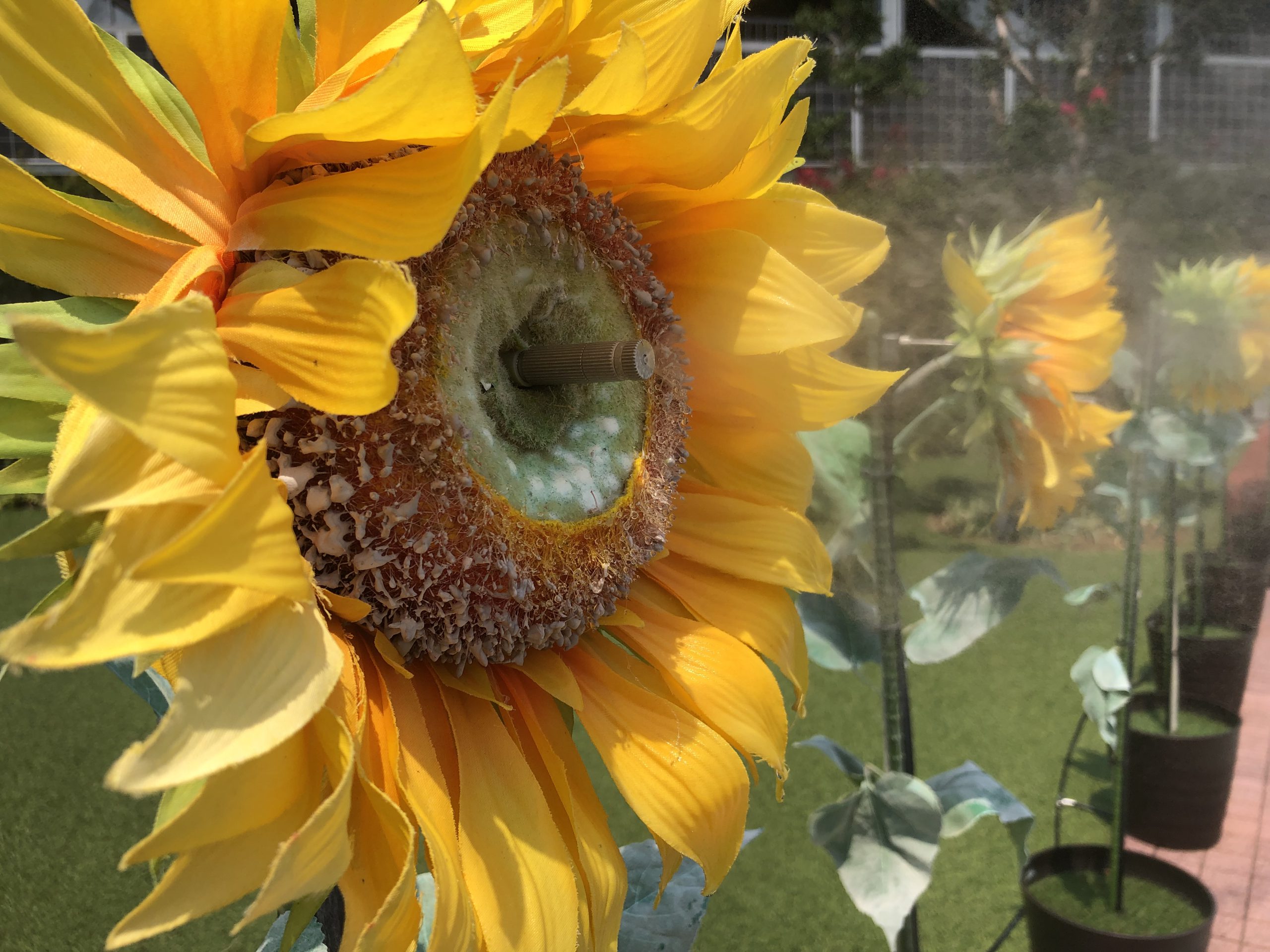 そうです、ヒマワリの花の中心から、ミストが噴出していたのです\(◎o◎)/!