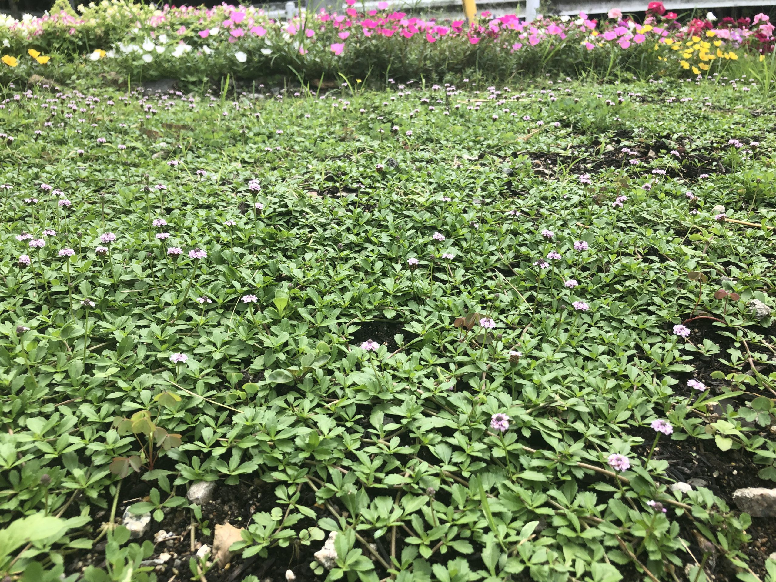 雑草を防ぐ為に挿し芽したグランドカバーがこんなに勢い強く茂って成長範囲を広げています。